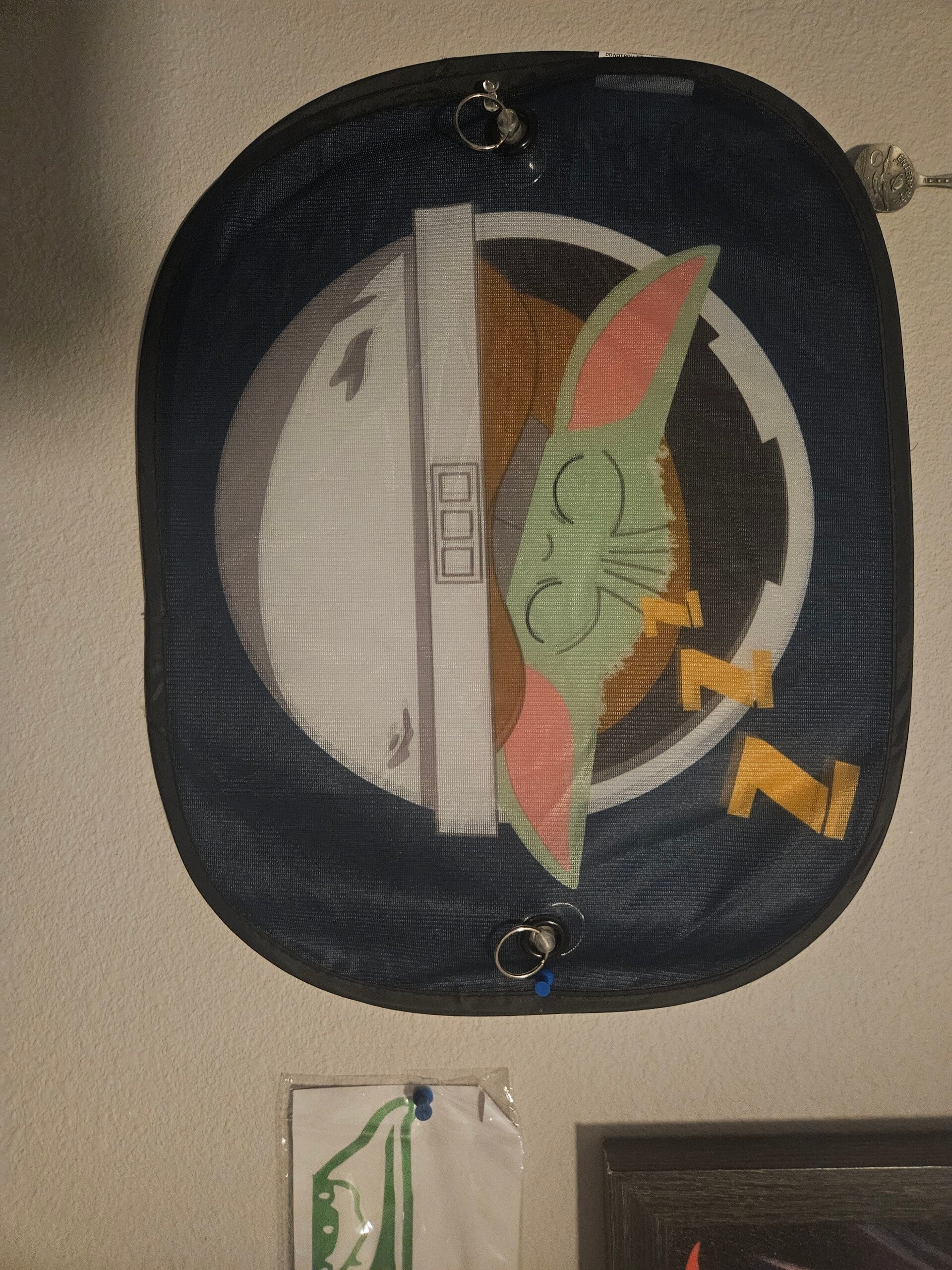 The other side has a pic of Grogu sleeping in his pram and it says "Do Not Wake the Child".